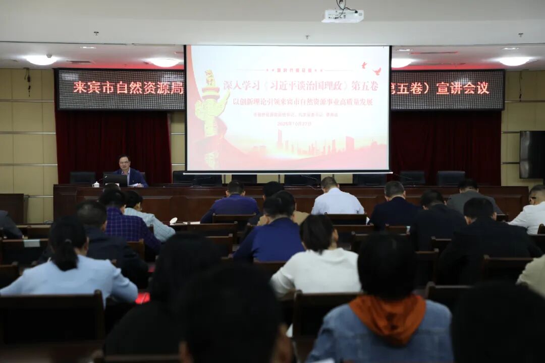 为深入学习贯彻党的二十届四中全会精神,推动《习近平谈治国理政》第五卷学习走深走实,切实把全局干部职工的思想和行动统一到党中央决策部署上来,10 月 27 日,来宾市自然资源局召开专题会议,集中传达学习党的二十届四中全会精神,并开展《习近平谈治国理政》第五卷专题宣讲。局党组书记、局长覃燕由主持会议并讲话。