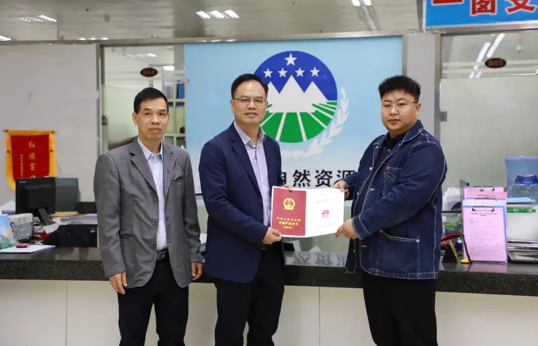 2025年11月14日,来宾市自然资源局在市政务服务中心举行首张采矿权不动产权证颁发仪式,正式向广西武宣方甲矿业有限公司武宣县二塘镇古墓山石灰岩矿颁发《中华人民共和国不动产权证(采矿权)》。这是新修订的《中华人民共和国矿产资源法》实施以来,我市颁发的首本采矿权不动产权证,标志着我市在深化矿产资源管理改革、落实矿业权“权证分离”制度方面取得实质性进展,实现了采矿权管理与不动产登记的有效衔接。