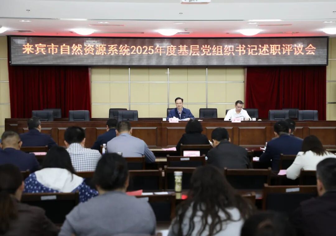 3月25日,全市自然资源系统2026年党的建设工作会议暨2025年度基层党组织书记述职评议会议在来宾市自然资源局召开。会议深入传达学习来宾市2025 年度县(市、区)党委书记和市直党(工)委、党组书记抓基层党建工作述职评议会及全区自然资源系统2026年党建工作会议精神,全面总结2025年党建工作,研究部署2026年党建重点任务。局党组书记、局长覃燕由主持会议并讲话,局党组成员、副局长覃玮作党建工作报告。