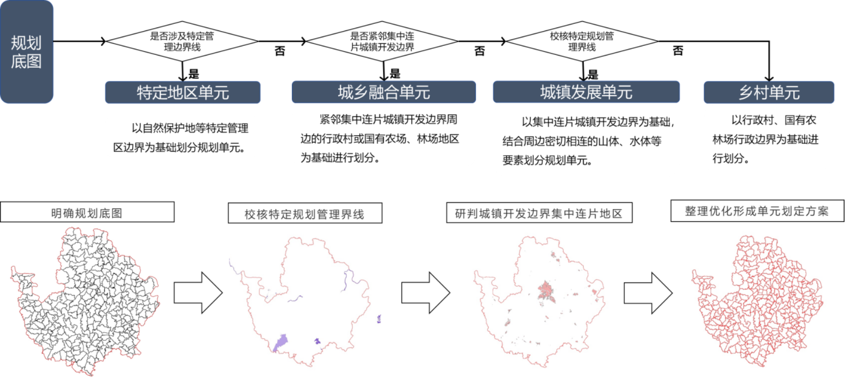 根据《广西壮族自治区国土空间详细规划单元划定技术要点(试行)》相关要求,明确规划底图,统一划定规则,按照“先特定、后一般”的总体思路,开展单元划定工作。